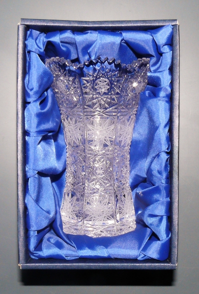 Nádherná ručně broušená a foukaná váza z pravého českého olovnatého křišťálu min. 24% PbO. Brus PK- pětistovka. Baleno v saténu s nápisem BOHEMIA CRYSTAL.