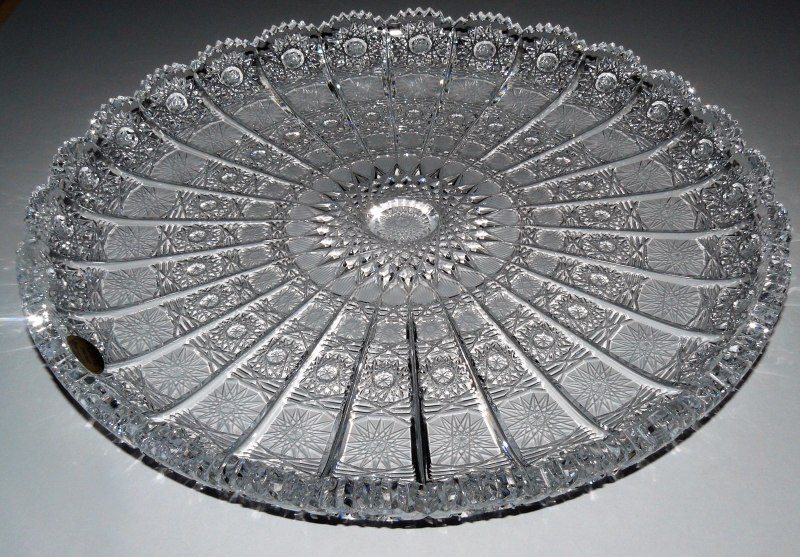 Ručně broušený  talíř  z pravého olovnatého křišťálu min. 24% PbO. Brus PK- pětistovka. Baleno v saténu s nápisem BOHEMIA CRYSTAL.