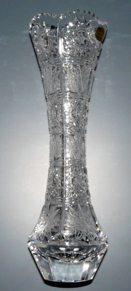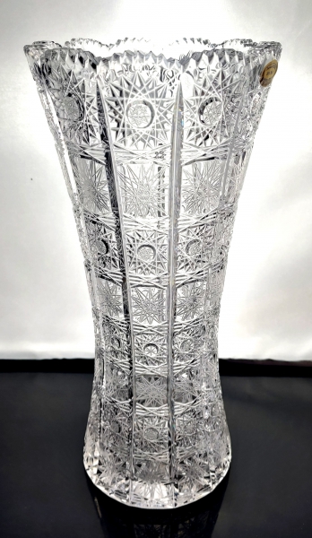 Luxusní ručně broušená a foukaná váza z pravého českého křišťálu min. 24% PbO. Brus PK- pětistovka. Výška 35,5 cm. Baleno v saténu.