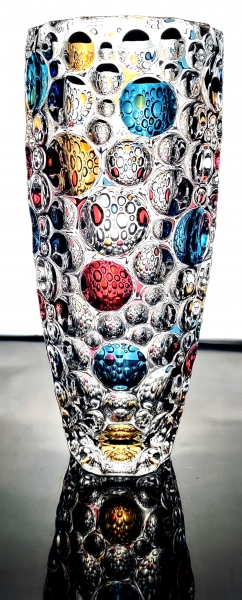 Luxusní designová váza Jihlavských skláren dekorovaná unikátní barvou LISTER z pravého olovnatého křišťálu min. 24% PbO. Jedná se o vázu velmi atraktivního vzhledu.